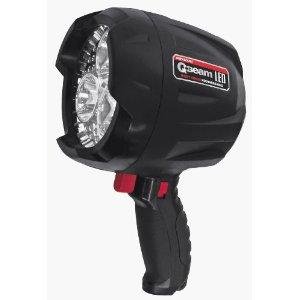 Ultra - bright Brinkmann Q - Beam LED Rechargeable Spotlight with Night Vision. SAVE BIG! Night-searing X-Lamp XP-E LEDs on this Q-Beam Spotlight crank out 600 lumens on high power! Switch between the standard white light and 33 red "night vision" LEDs for a muted, but effective lighting option in the dark. Simply pull the on / off trigger switch to activate the light. It's built to last, too... has a rugged, durable ABS plastic housing to protect delicate pieces inside. Big beam: Rubber grip with balanced handle; Selector switch for high, low and red settings; Lockout switch to prevent accidental turn-on; LED charging indicator to let you know when the battery is ready to go; Internal rechargeable alkaline battery included; Comes with 12V DC charger (UL-listed); 5-hour runtime on "high"; 10-hour runtime on "low." Weighs 3 lbs. Order this shadow-piercing Spotlight today! Brinkmann Q-Beam LED Rechargeable Spotlightwith Night Vision